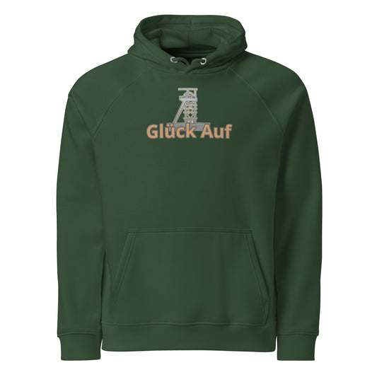 Erzgebirgs Bio Hoodie Glück Auf grün